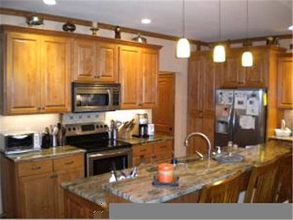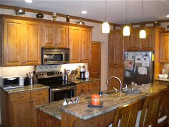 • Kitchen Island, Natural Woodwork, Vaulted Ceiling(s), Wet Bar