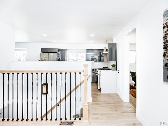 Inviting interiors inspire simple sophistication in this Applewood home. A charming brick exterior welcomes residents into a bright and spacious layout wrapped in neutral hues. Handsome hardwood flooring extends throughout the main level complemented by modern finishes. An open living area beams w/ warmth from a cozy fireplace. Thoughtfully placed windows draw in abundant natural light crafting an airy atmosphere. A contemporary light fixture illuminates a dining area adjoined to a chic kitchen. Sleek cabinetry and stainless steel appliances elevate the home chef’s workspace further. A primary suite flaunts wide windows and a tranquil bath w/ dual vanities. Sizable secondary bedrooms offer versatile uses for new residents’ specific needs. Entertainers delight in an expansive finished basement w/ a recreation room grounded by a fireplace. A laundry room w/ a washer + dryer set is an added convenience. Outside, a vast backyard offers endless potential for designing a backyard escape.