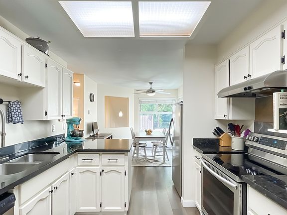 This spacious and updated end unit has it all: rooms on opposite ends, separate dining area, large South facing living room with gas fireplace, 5 piece cheater en suite bathroom with a skylight and an oversized laundry room. New hot water tank (2022). Expansive sunny and covered deck with Southern exposure has new vinyl (2022) and plenty of space for gardening and BBQ. Very private and quiet yet close to everything you need; WCE train station, shopping and recreation including new playground and off leash dog park. 1 parking and extra storage in the carport. Pets welcome.
