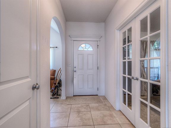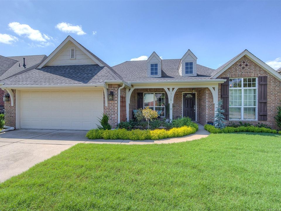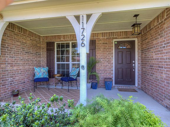 One level home on nice lot with cozy front covered porch, open back patio, 4 bedroom home with office/formal living or dining off foyer. 4th bedroom could be used as office. Large open living with wall of windows overlooking back yard. Gas fireplace. Granite countertops, island w/eating bar, stainless steel appliances, including fridge. Soaker tub, separate shower, double sinks, in master bath.
