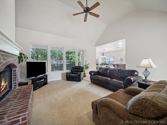 Eddington Place is a premier Jenks schools neighborhood providing a pool, park and trails for community enjoyment. This single level home is perfectly sized and very spacious. A soaring ceiling adds significant drama in the living area and the open concept works especially well with the formal dining area which can also serve as great flex space.