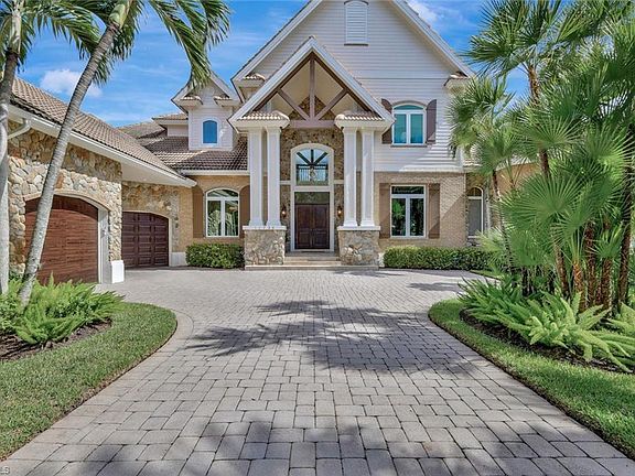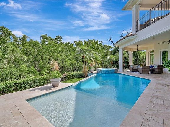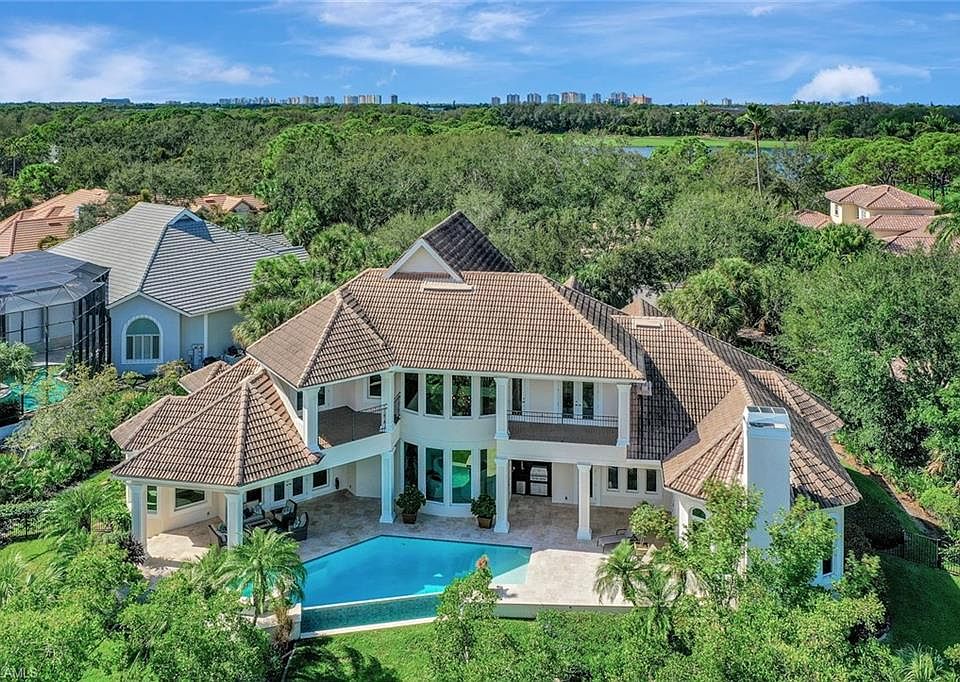 H12004. Architectural Showstopper in Audubon Sanctuary! Tucked away off a quiet cul-de-sac, this French Country-style Manor is the perfect escape from the ordinary. Affording the privacy of a 27,000 SF (0.62 acre) site, the residence was commissioned for a 4-BR+Den plan complemented by expansive outdoors w/ 226 ft. nestling against a nature preserve. The open-concept interior is flooded with natural light showcasing remarkable architectural elements, from walls of tall nature-reflecting windows to soaring ceilings w/ exquisite coffered & tray ceiling detail. Luxury amenities include a 500-bottle climate-controlled wine room; butler's pantry; gas fireplace; and wood-paneled elevator to the upper-level. The fabulous owner's suite w/ French doors to the lanai features a light-filled retreat, two XL walk-in wardrobes and a gorgeous marble bath. A chef's delight is the island kitchen incl. gas cooktop, double wall ovens, a walk-in pantry & ample granite-topped custom cabinetry. The renovated negative-edge pool, spa, stone deck & poolside BBQ are pure pleasure to share. An over-sized 2car+golf cart garage, impact windows/doors and a soon-to-be-installed new flat tile roof top it all off.
