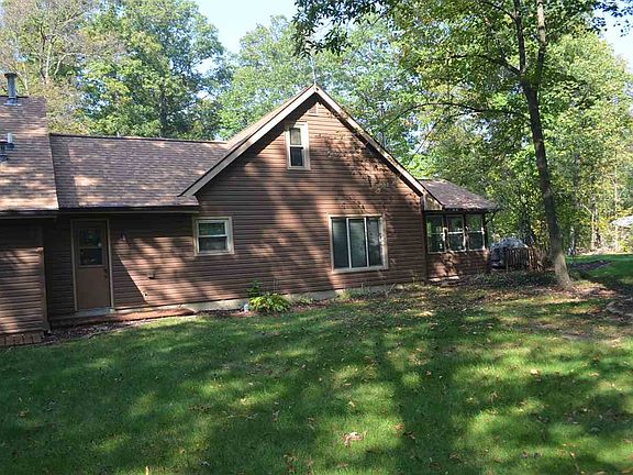 The price stated on this property is the assessed tax value (for MLS Purposes) This property is being sold at public Auction on October 23 at 6:00 p.m. 2 Acres on wooded lot, 3 BR, 2 1/2 BA, plus bonus room upstairs which has assess to walk in area over the garage for storage, 2308 sq. ft, Gas FA/CA, Sec. System, Enclosed sun room with ceiling fan, deck area, Mst. BR with a walk in closet and a full bath, Kitchen area has a breakfast bar, pantry, gas range, built in mircowave, dishwasher, utl room has a laundry tub, closet area plus ext. door , 1/2 bath is off of the utl room,Family room has a catherdral ceiling with a ceiling fan plus a wood burning stove with brick surround, open floor plan, dining room, concrete driveway with turn around, 3 car att. garage finished with peg board, plus 2 car det. garage with Gas Wall Heater, 10 x 12 Shed. Gas Water Heater, Water Softener, 200 amp service,Many updates including Replacement windows, Siding, Gas Furnace, Shingles, Plenty of storage area. Sewer is going to be installed in the near future