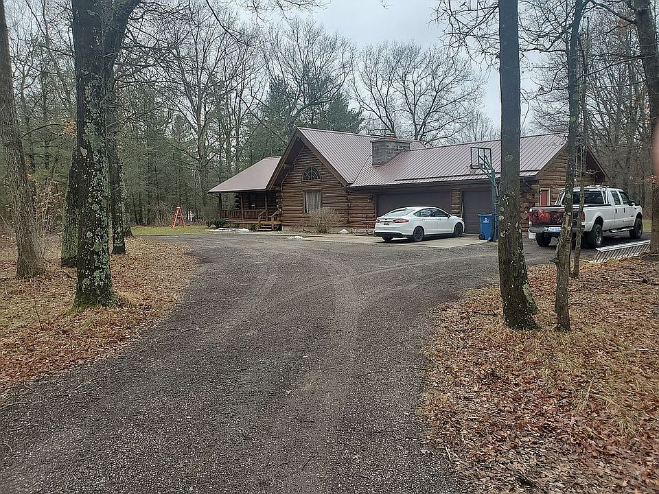 If you are looking for some privacy,this is it. A log home sitting on close to 5 acres. Large open back yard surrounded by trees. Circle drive in front. Located only 2 miles from US-31. Screened in porch. Deck off rear French door. Attached 3 stall garage which is fully insulated and heated. Home is heated and cooled with a closed loop geothermal system. Main level has 2 bedrooms and a loft. Wood- burning fireplace in living room. New vinyl and wood flooring on entire main level. Finished basement with brand new vinyl laminate flooring. Staircase in the basement that leads to attached garage. Possible additional bedroom in basement if a larger egress window is installed. 3D view was taken before upgrades were made. Buyers bring your realtor at 3% commission.