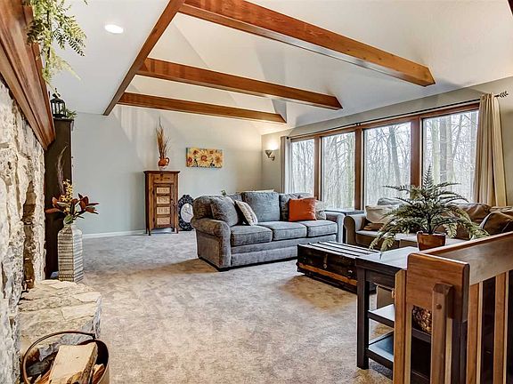You can't put a price tag on this natural setting & it's location combined! Private 3 acres w/ approx. 1 acre of woods w/ creek running through, yet minutes from I-69/Hwy469, hospital, schools, shops, restaurants, & parks. This home offers approx. 3100 sqft of living space, w/ the majority completely remodeled in the past year. The home's interior design & features are one-of-a-kind w/ floating stairs, multiple landings, wood beams, 2 beautiful fireplaces, custom kitchen cabinets, hard-wood floors, & undeniable views. True master suite on main level w/ quartz dual vanity, custom cabs, soft-close doors/drawers, custom-tiled walkin shower, luxury vinyl wide-plank flooring, hidden media niche w/ sliding doors, & spacious walk-in closet. Upstairs has 3 large bedrooms w/ great closet system storage, dual-vanity bathroom w/ cultured marble tops, custom cabs, soft-close doors/drawers, private toilet & tub/shower, & a huge walk-in attic. The mid-landing offers pocket office w/ mini french doors & a view! Lower walk-out level has 2 large spaces for family room, play, exercise, you name it. Endless storage throughout the home, including large mudroom w/ custom built-in cubbies & hooks. Besides the over-sized 2car attached garage, the 3 car (double-deep) detached garage offers an upstairs w/ windows and future potential to finish. Outside, you can enjoy a massive back deck in the trees w/ built-in benches, paver paths, tiered landscape beds, lower level paver patio, & brick firepit area built into the woods, looking down onto the ravine. Many native plants & flowers call this property their home, popping up to surprise you. 2017 improvements/remodel: new well, complete tear-off roof, front gutters, some new windows, carpet & LVP flooring, detached garage door, majority plumbing & electrical, spray insulated crawl space, water softener, bathrooms, bedrooms, office, closet systems, spanish lace ceilings, & more! Other newer items: furnace, AC, water heater, dishwasher. Truly a rare & amazing place to call home, if your lucky enough!