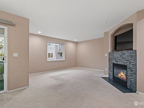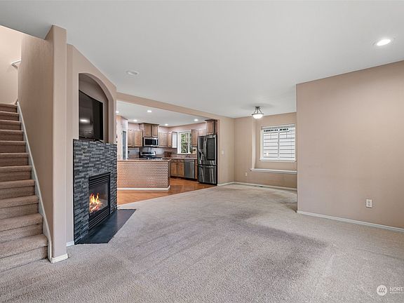 Welcome to the Conveniently located Alderbrook Village West Community! This detached townhome offers 2,209 sf, 4 bed, 2.5 bath features a bonus room at the entry level. Mid-level has a bedroom and an open kitchen with island, newer appliances, gas cooktop, granite counter, walk-in pantry, lots of cabinets. Adjoining living room with gas fireplace and a darling balcony space. You will love the oversized primary suite with cathedral ceilings, full bath and a walk-in closet. Laundry space, another full guest bathroom and 2 more bedrooms complete the upper level. 2-car garage, gated community, fully fenced. Close to schools, shopping, dining, public transportation, freeways. Low HOA dues. Virtually staged.