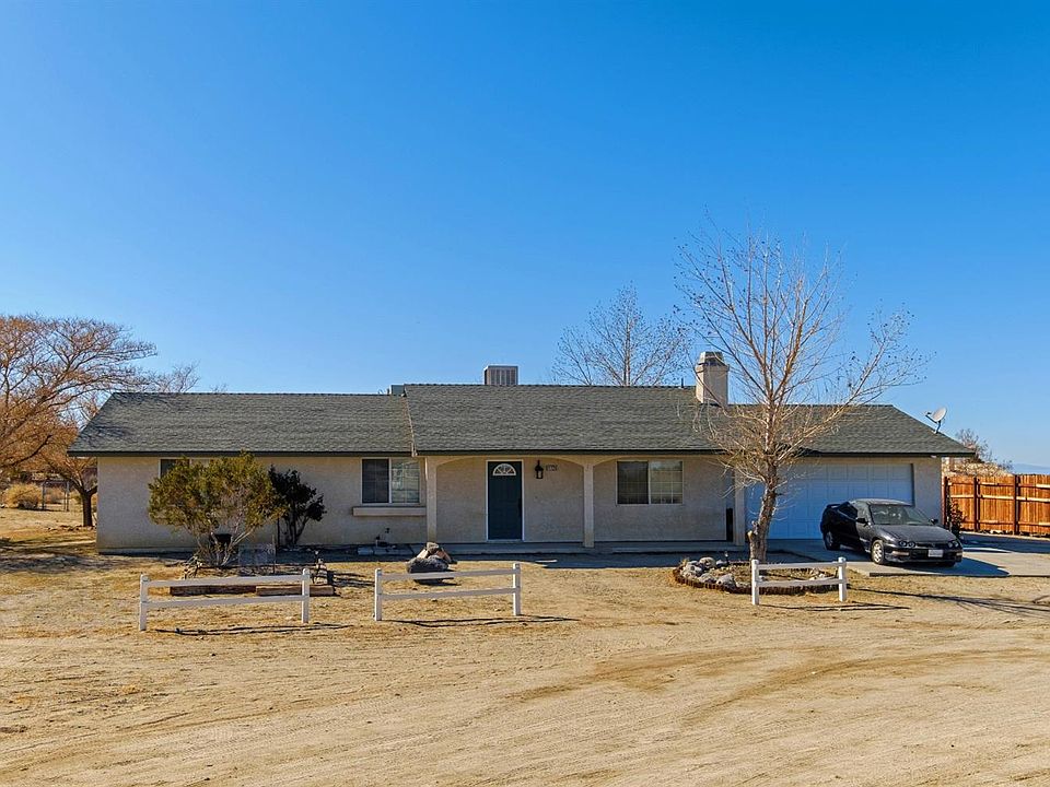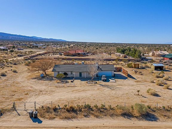 ***Unobstructed Mountain Views - Level 2 Acre Lot *** Features include new paint, new laminate flooring, large country kitchen, living room with brick fireplace, 2-car attached garage, huge covered patio to enjoy the snow-covered mountains and desert. Chainlink fencing, wood privacy fencing, 2 sheds, lots of room for all toys. Only 1/2 mile off paved Oasis Rd.