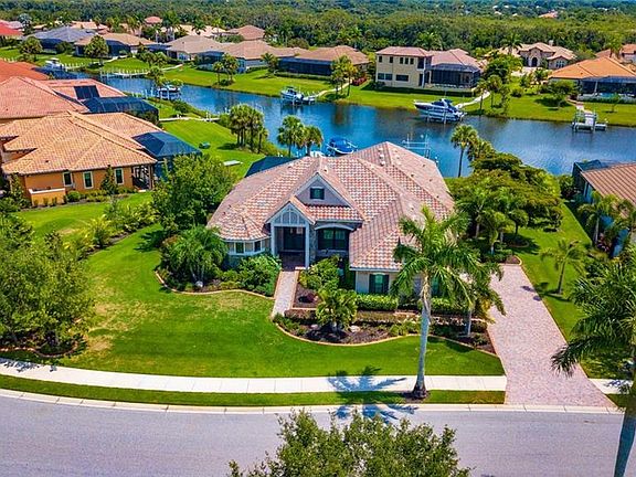 **Available for private in-person and/or virtual showings**From the moment you enter the gates of The Islands on the Manatee River, an upscale waterfront community, you will enjoy all the perks of a Florida waterfront living lifestyle. Through the main double doors, you'll be greeted w/ natural light, a great room with a fantastic view of the water, 3 bedrooms, 3 full bathrooms, office/den. The oversized kitchen with a beautiful eat-in space overlooking the lanai & canal is a chef's dream w/ stainless steel appliances, double oven, granite countertops, soft close custom wood cabinets w/ pull-out shelves, walk-in pantry, & most importantly, plenty of counter space. The crown molding, tray ceilings, Italian plank wood floors added in 2018, expansive laundry room, & 2 new air conditioning units in 2018 & new water heater in 2019 are just a few of the added bonuses. The Master suite has a garden tub, an oversized shower, & double custom walk-in closets. Foremost among those amenities is the deep-water canal with Tampa Bay just a short boat ride down the Manatee River. You'll also have plenty of room for your water toys with the large dock and 10,000 lbs boat lift equipped with water and electric. For those lazy days when you want to stay home & relax, enjoy the large screened in saltwater pool (newly resurfaced in 2018) with outside kitchenette & built-in Wolf grill. The lanai also features misting fans & A-Niks. Lastly, the oversized/deep 3-car garage with separate wall mounted air-conditioner gives even MORE storage for outside toys!