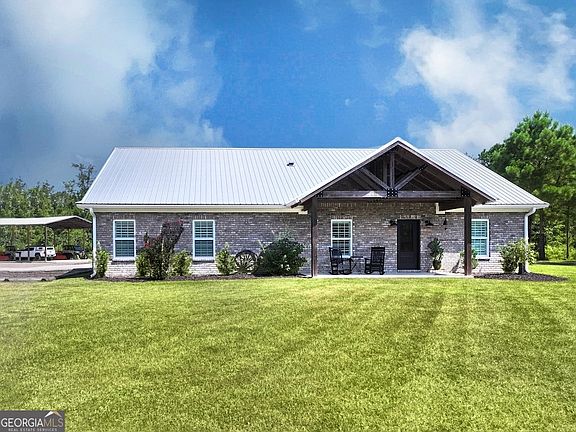 Private paradise is calling you! Located within the gated Timber Rail Plantation community, this property offers all of the bells & whistles on 25 usable acres. Welcoming you with a hitching post entrance, this property boasts an impressive 1.2 acre pond stocked w/ a variety of fish (including bluegill, hybrid bluegill, bass, catfish, & sterile grass carp), an auto feeder, 120V service & a full time aeration system, a 30' x 30' cement slab pole barn, ready to go chicken coop, small orchard w/ guava, apple, plum & kumquat trees, as well as cleared scenic trails & boundary lines (perfect for ATV or horseback riding). Additional features include the easy maintenance brick exterior, all new exterior accent lighting, front & back covered porches, partial in-ground swimming pool w/ lanai & sun deck, private well w/ added water ozone generator, water softener & UV light treatment, & more. Step inside the new front door to a perfect blend of luxury & functionality with 2183 sq ft exquisitely updated w/ new plantation shutters throughout, new interior paint, beautiful new shiplap walls, new solid core wood doors, new craftsman door/window/crown molding accents, new lighting & new upscale granite countertops throughout. The open kitchen, dining, & living area design showcases the high vaulted ceiling w/ new custom wood beams and stacked-stone gas fireplace. The kitchen offers generous prep & serve space, a deluxe stainless steel wide farmhouse sink, breakfast bar w/ new custom wood corbels, stainless steel appliances, & a pantry prepped for your own configuration. The primary retreat makes a lavish statement with its rich color & wood beam ceiling, sizable walk-in closet w/ antique barn door, walk-in tiled shower, & dual vanity w/ ample dressing room & storage. Do not overlook the spacious garage featuring a separate full bath w/ tiled shower & wide stainless sink. Have peace of mind through rough weather knowing there is a Generac automatic whole home 22kw propane generator w/ an above ground tank. Located to the east side of the home, you will also discover an RV hookup & dump, convenient for travelers. Whether you are looking to begin a hobby farm or simply enjoy nature- privacy, luxury, & convenience are all found here. Easy to show or see. Call to schedule your private showing.
