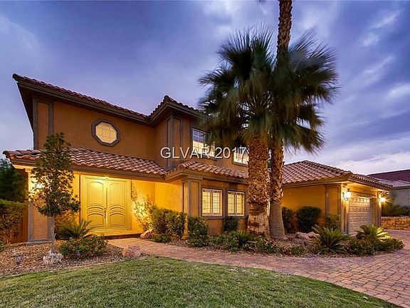 WOW!! Beautiful custom home in Calico Ridge w/MOUNTAIN VIEWS! Amazing customizations throughout.Entry showcases vaulted ceilings w/a bright open feel.Master is a retreat with recently renovated bathroom & includes private balcony w/STRIP VIEW!Escape to the backyard w/a built-in BBQ, outdoor firepit, lagoon style beach-entry pool.Attention to detail throughout the home makings this an awe-inspiring beauty. Freshly painted exterior & many upgrades!