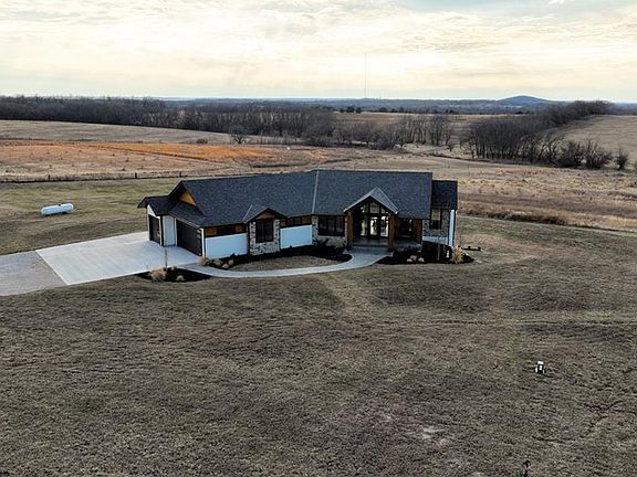 3.5 baths and sits on approx. 12.5 acres. The great room features 17 ft. ceilings, a stone fireplace and an