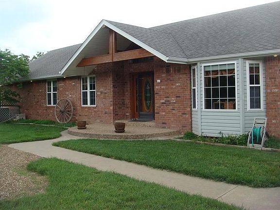 1173 E. 318th Road, Flemington MO. Gorgeous, secluded country home on 68 acres, and within 2 miles of Pomme De Terre Lake! This custom built home features large rooms, a gourmet kitchen with Corian counters, and a commercial Five Star range-truly a cooks delight! Enjoy the wildlife, abundant fruit trees, and views of the serene pond from the back deck that spans the entire length of the home. This brick, walkout basement home includes numerous built in cabinets, a sunroom/breakfast room with vaulted wood ceilings and beautiful windows. The master bath boasts slate floors, and a large walk-in slate shower! Just around the corner from the master bedroom is a sewing room or nursery. For the wine lover, theres even a wine room/safe room! This wooded compound is a hunters paradise, and in
