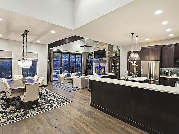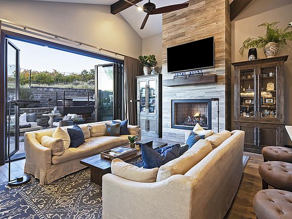 Perched uphill in Soaring Hawk with picturesque views of Deer Valley & the Jordanelle, this beautifully appointed, south facing, contemporary residence is an entertainer's delight. Single level living w/ exquisite finishes throughout. Highly desirable open floor plan w/ spacious living room, vaulted ceilings, custom beams, fireplace & inviting dining room ideal for gatherings. Gourmet chef's kitchen features Viking appliances, quartz countertops, plenty of space for prepping, central island, two breakfast bars and pantry. Accordion window walls fold open to an ultra private outdoor oasis backing to open space & private trails. The expansive outdoor living / dining spaces with hot tub & fire pit, are perfectly situated to take in endless sunset vistas. Walk out to the patio from the spacious master bedroom with fire place and guest master both with ensuite bathrooms. 2 car garage with electric charging station. Only 10 minutes from Park City and Kamas & 35 minutes to SLC Intl Airport.