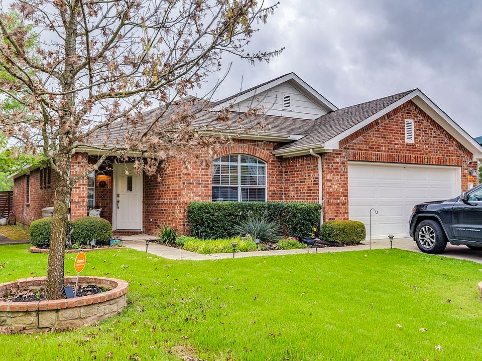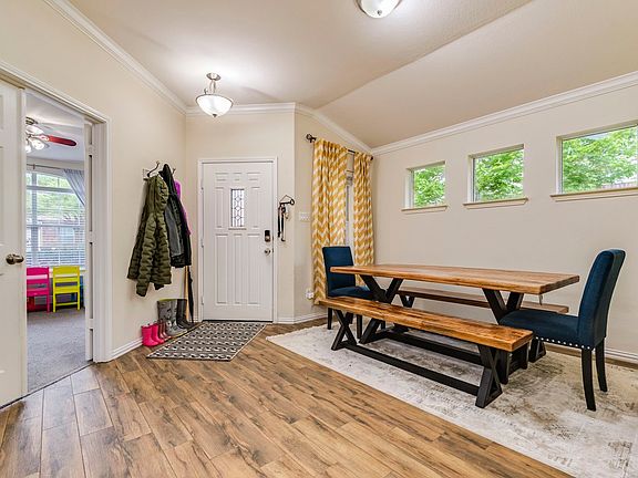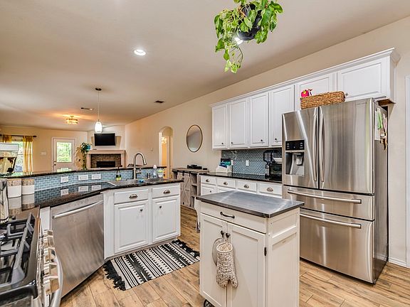 Here's your Garlic Creek dream home with updates such as paint, cabinets, flooring and so much more. This home backs to the greenbelt AND is next to the resort style amenity center with pool, exercise room, club house, outdoor fire place, and water play area! 3/2 with flex space, granite counters, large covered porch plus extended patio.