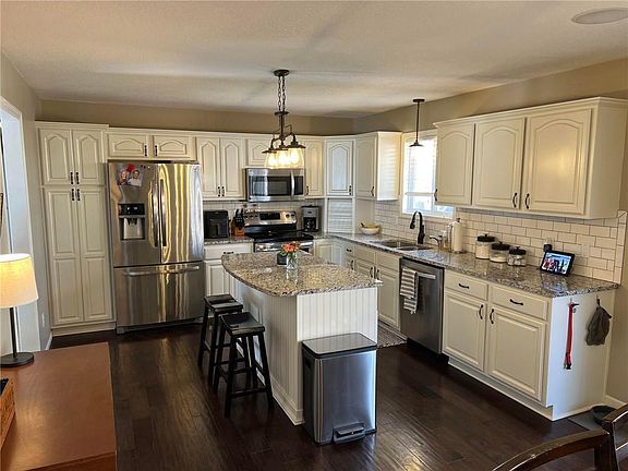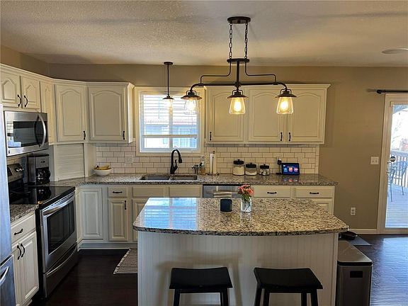 This house has it all! You will find a large living room with a vaulted ceiling, a big kitchen with stainless appliances and granite countertops, and a center island that allows for more workspace. Off the kitchen is a nice size dining area which leads to the deck overlooking a fenced back yard. The deck has a canopy which will accompany the sale. Back inside there are 4 bedrooms and 3 full baths. the laundry area is on the main floor which is a big plus. The lower level has a nice sized family room where you will find a surround sound theater with a 105" screen, (all of which remain with the house). Be sure and read the list of improvements attached to the listing. All new flooring, new lighting, new interior doors, refinished cabinetry, new interior paint, all new appliances, and newer HVAC are just some of the improvements. This house is definitely in move-in condition and in a desirable location near NWMSU and the Maryville Country Club. If you have children don't miss their private area under the steps in the lower level.