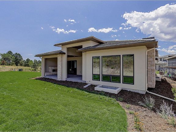 Brand new low maintenance home located in prestigious Village at Castle Pines. You may not need much more, but this house has plenty more to offer. The open concept main level allows for endless entertainment with an over sized island, professional appliances, and a wet bar. Additionally on the main level is the master bedroom suite with views of the golf course. The master bath is well appointed with a free standing bath tub and curbless shower. A large stacking slider opens up the main living space to the enormous outdoor living room which includes a fireplace. The basement has two additional bedrooms and bath along with a large rec room and plenty of room for storage. This home sits on the largest lot available in the Prato neighborhood, and you won't have to lift a finger as landscaping maintenance and snow removal is included with your HOA.