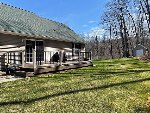 This is a fantastic country property is just moments from town. The home was built in 2004 and still feels new! Nice open floor plan between the kitchen dining area and living room, everything is conveniently located on the first floor but with so many extras! There is a walk up attic you can stand up in and is floored and ready to be finished, the lower level walks out and has 2 rooms that could be a bedrooms, a future bathroom and 2 additional finished areas. The oversized deck overlooks the perfectly manicured yard and is surrounded by woods. This property is pleasant and peaceful.