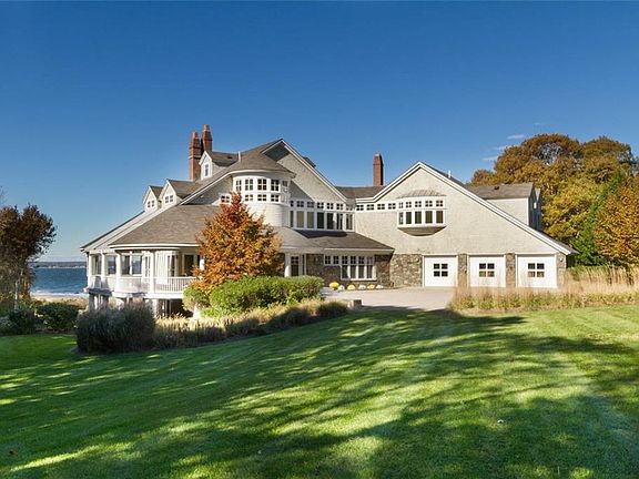 Stunning Waterfront Home! The West Passage of Narragansett Bay, with its sensational sunsets, makes a gorgeous backdrop for this beautiful stone and shingle-style New England residence, West View. Privately sited on 11+ lush acres with a rare 525 feet of beach frontage & views from every room, the property has an ambiance of an exclusive seaside retreat.West View is warm and welcoming while offering an open floor plan full of light, grace, and style. This coastal gem is custom built and architecturally designed with high-end finishes, beautiful hardwoods, custom cabinetry, high ceilings, and detailed moldings.The home offers four en suite bedrooms with 5,300 square feet of spacious open-living and dining areas, a great room and family room warmed by a stone fireplace, and a chef's kitchen. A den with wet bar opens to a rooftop deck perfect for entertaining or relaxation. A stylish screened porch overlooks the pool, blue-stone patio with spa, and exquisite stone walls surrounded with perennial plantings making an awesome setting for warm intimate gatherings or for more formal entertaining. Enjoy peaceful walks on the beach, treasure hunting for sea glass and shells, or explore the beauty of the Bay by kayak. At dusk, become mesmerized by the sensational sunsets. Other amenities include outdoor shower, a sea-side shed, and a three-car garage. Plans for an additional three-car garage with apartment above are available. A dock is also possible. Indulge in the seaside lifestyle!