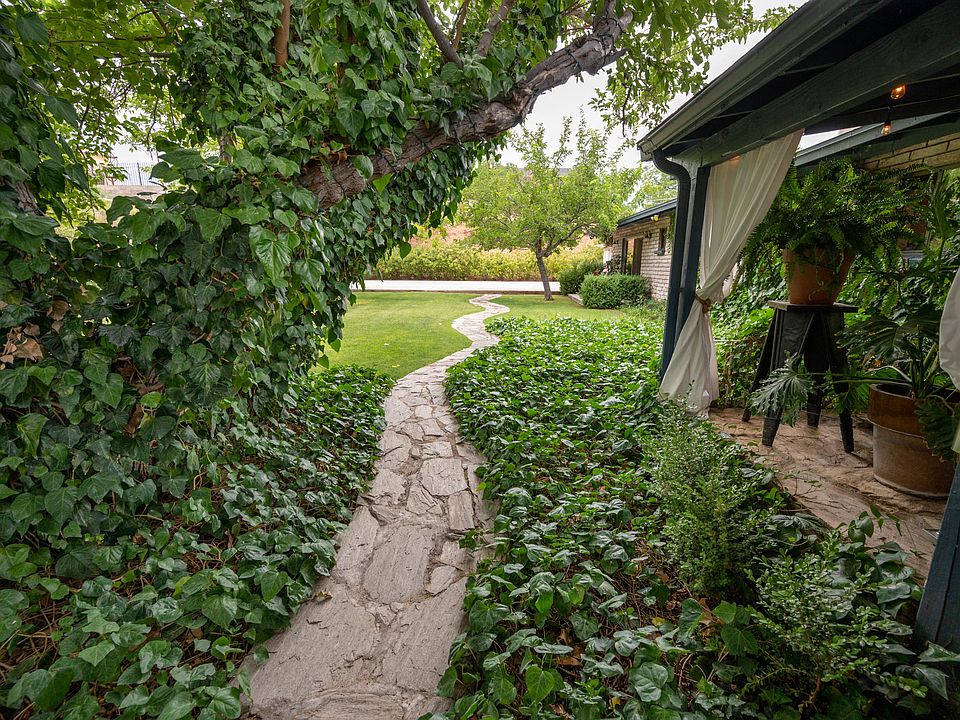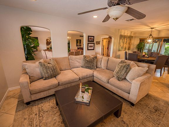 Sophisticated Ranch style home showcases a picture perfect exterior and immaculate interior. Single-story layout features pristine Travertine and Bamboo floors, elegant archways, updated kitchen with industrial range , remodeled living room and master bedroom. Kitchen and master bedroom open to an expansive backyard. Backyard has a ''park'' style feel with a covered porch, a new ramada with a beautiful slat ceiling, recess lighting and ceiling fan. Ramada offers an outdoor dining experience with a built-in Jenn-Air BBQ grill. Backyard also includes a large concrete pad that is multi-functional. Can be used for many functions such as a basketball court or tenting for gatherings.A must see gem!