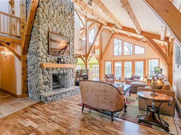 EZ TO VIEW! THIS HOUSE CAN BE SHOWN! * !STUNNING NEW ENERGY WORKS TIMBER FRAME ESTATE HOME*6 PVT ACRES W/LRG OUTBUILDING IN-GROUND POOL&POOLHOUSE*1 OWNER POST BEAM MASTERPIECE CONSTRUCTED OF SOUTHERN WHITE PINE TIMBERS W/ENERGY EFF STRUCTURAL INSULATED PANELS(SIP)*DRAMATIC 2 STRY ENTRY&FLR TO CEILING FIELD STONE FP HIGHLIGHT GREATRM W/HICKORY FLRS *SPACIOUS&OPEN W/WALLS OF WINDOWS&GLASS DRS OPENING TO EXPANSIVE DECK OVERLOOKING CUSTOM IN-GROUND POOL&LRG POOLHOUSE W/1/2 BA&OUTDOOR SHOWER*ENTERTAINERS KITCHEN W/HICKORY CABINETS & ENDLESS COUNTER SPACE*PVT 2nd FLR MASTERSTE & 3 BDOMS & SPACIOUS OFFICE ON 1ST FLR*FIN LL GAME/MEDIARM*DETACHED 4 CAR GARAGE/WORKSHOP/STUDIO & LOFT*1ST FLR LAUNDRY,WALKIN PANTRY*3 SEASONRM*METAL ROOF '20*HFL SCHOOLS*HORSES PERMITTED*