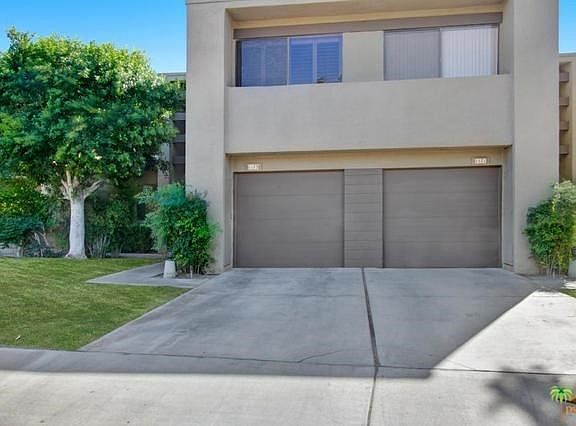 You own the Land. Donald Wexler Designed! Spacious and Elegant 2 Story Condominium with Fabulous Patio and Green Back Yard with South and West Exposure and Sweeping Vistas. Quiet and Prime Private Location. Beautiful remodeled Kitchen. Half bath on the Main Floor. Oversized Master Suite with Walk in Closet Upstairs with those same South and West Sweeping Vistas, plus great Guest Bedroom and Bathroom. Newer A/C installed in Oct '16. Lots of Closet Space. 1 Car attached Garage, Drive Way Parking, plenty of overflow Guest Parking and the Tennis Court (to be used as Pickle Ball Court as well), Pool and Spas are located across the Street.
