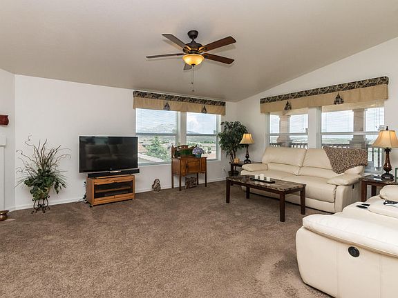 WHAT A GREAT HOME WITH BEAUTIFUL VIEWS OF GRANITE MOUNTAIN OFF THE LARGE TREX DECK . A CUSTOM OVERSIZED FLOOR PLAN OF THIS ALMOST NEW MANUFACTURED HOME. LARGE GREAT ROOM WITH FIREPLACE, EASY TO WORK KITCHEN WITH UPGRADED APPLIANCES, HIGH BAR LEVEL EATING AREA AND DINING AREA. 3 NICE SIZE BEDROOMS WITH 2 BATHS AND LAUNDRY. GARAGE IS A FULL 2 CAR WITH LARGE STORAGE. FRONT AND BACK OUTSIDE LIVING AREAS TO ENJOY THE SUNSET BEHIND GRANITE MOUNTAIN AND COVERED PATIO WITH DINING AREA TO ENJOY YOUR MORNING COFFEE.
