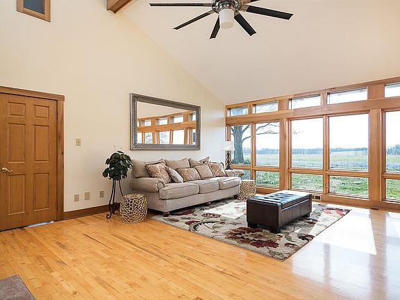 5 gently rolling acres, a 7-bent barn (newer roof and electric), & a gorgeous 5 bedroom home with 5300+ SQ FT - all included in this wonderful property. Contemporary home boasts all the natural light you could want with floor to ceiling windows that highlight the amazing view. Home has an open floor plan with a Great Room featuring a vaulted ceiling. Kitchen has tons of counter and cabinet space with stainless steel appliances, a pantry, and a large dining area, in addition to a formal dining room. Home has a 1st floor master suite with a bonus loft and a private bathroom with a separate tub and walk-in shower. 4 additional bedrooms are generously sized with good closet space. Home also has a spacious separate utility and sun room. Finished basement has a HUGE rec room with heated floors and tons of storage with 2 unfinished areas. Property would make an ideal mini farm and is very conveniently located minutes from town & highway access, but with the privacy of the country.