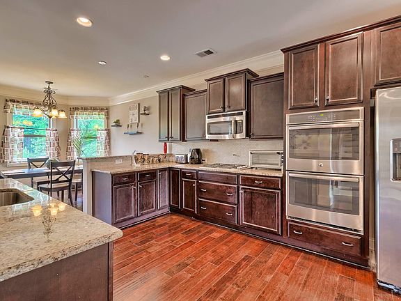 - RoomKitchenFeatures: Granite Counters, Pantry, Eat-in Kitchen, Floors-Hardwood, Cabinets-Stained, Bar