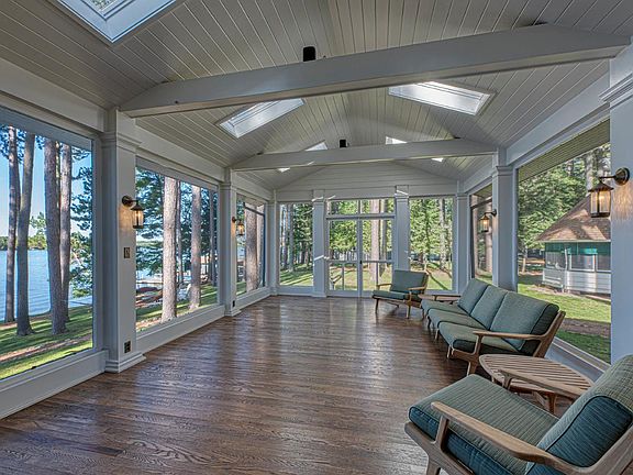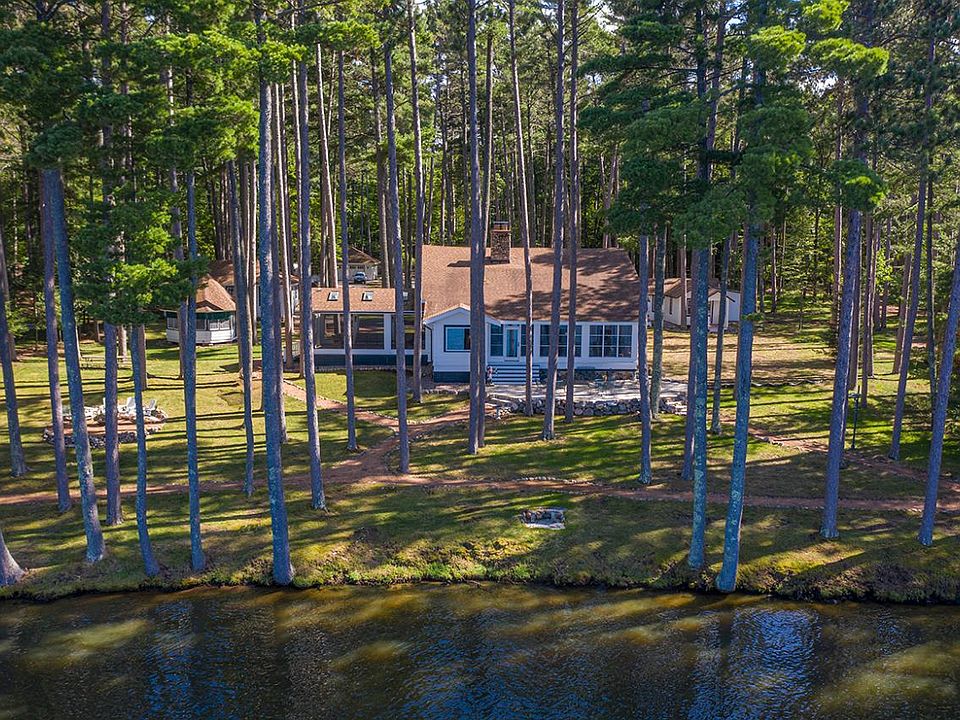 EXCEPTIONAL EAGLE RIVER CHAIN HOME ON CATFISH LAKE- Vintage Eagle River/Three Lakes Chain of 28 Lakes 5 bedroom, 3.5 bath home. Designed by architect Harry Clymer, and built in 1918, this home is nestled on 2.7 level acres and 200' of prime frontage with Western exposure on Catfish Lake. First floor highlights include original wood floors, custom woodwork, central wood burning fieldstone fireplace, retro kitchen appliances, lakeside 3 season room and 24'x16' screened porch with incredible lake views. Second floor includes a bunk room/bedroom, den, full bath and laundry room. Newly installed 1400 sq ft basement, with 1/2 bath, can provide additional living space. A charming 2 bedroom, 1 bath cabin is available for family, friends or guests. Wet boathouse with permanent pier/deck area, lakeside patio, multiple garages, car port and gazebo with hot tub are additional features that enhance the ambiance this property exudes. Schedule your private viewing of this iconic offering today.