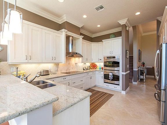 Spectacular home with 5 bedrooms, 4 baths, 3-car garage with 3,677 AC SQ FT and a beautiful lake view. Chef's kitchen with all stainless appliances, double ovens, 42'' cabinets with crown molding, under cabinet lighting, granite counter top, tile backsplash, snack bar and family dining area. Huge master suite with a coffer ceiling, bay window, sitting area and his and hers walk in closets. Elegant master bath with dual sinks, garden tub and a walk in shower. Spectacular 2 storied family room with lots of natural light. Large loft can be used as a 2nd family room. Canyon Springs is located close to shopping, A rated schools, restaurants, trendy Atlantic Ave and the Florida