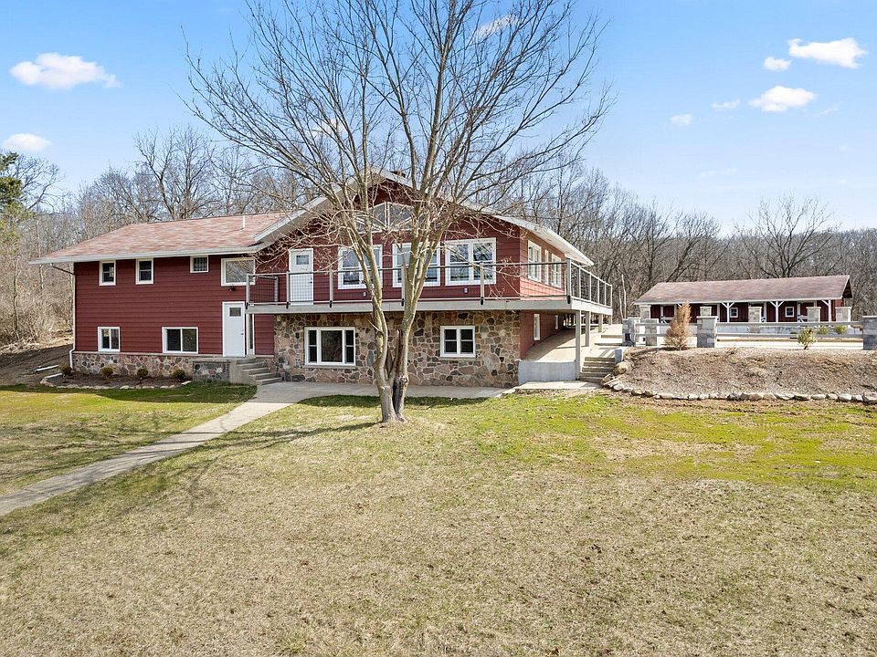 Open House- Feb 24th 12-2pm! ''Seller is offering a $10,000 credit to be applied towards an interest rate buy down''. Enjoy the amazing sunrises from this completely renovated 3700 square ft home! Features tons of upgrades and lakefront views! You'll love the show-stopping vaulted great room with plenty of natural lighting, stunning hardwood floors and beautiful stone fireplace. The spacious great room is open to the kitchen and dining, creating a layout that is ideal for entertaining! Soak up lakefront views from the spacious wrap around porch. Primary suite includes master bath with custom tile shower and large walk in closet. Downstairs features four additional bedrooms, a family room and a beautifully updated bathroom. Additional features- 3 car garage/4 stall horse barn/ beautiful patio great for entertaining! All new electrical, insulation, windows, furnace, new A/C, tankless water heater, and much much more!, Primary Bath. Lake access to lake iron within a mile and state park is within 2.5 miles.