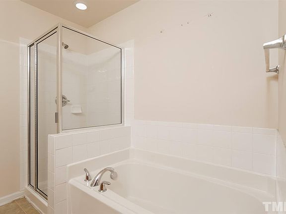 This Raleigh two-story offers granite kitchen countertops, a master bath separate tub and shower, a master bedroom walk-in closet, and master bath dual sinks.
