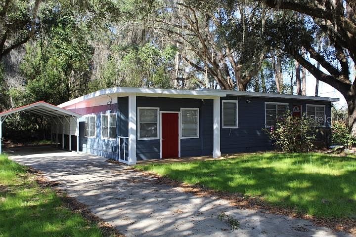 One or more photo(s) has been virtually staged. There is so much about this fully renovated, versatile, 2+1-bedroom, 2-bathroom house on an attractive quarter-acre lot, near Dunnellon, that makes it stand out: Two separate entrances that allow two separate living spaces. There is a large separate bedroom with en suite full bathroom and laundry that can be used by in-laws, offspring, or parents seeking their own refuge. Two separate driveways to enable family members to come and go on their own schedules. Recent major renovations including: New roof New central air conditioner New septic drain field and lift station New steel carport New doors, interior and exterior New flooring New window mini-blinds Fresh paint inside and out It's no exaggeration to say it's practically a new house with all the upgrades and updates it features. That's what the neighbors tell us, too! Officially the house has two bedrooms and two full bathrooms, but there is a great third room that can be used as a bedroom, office, den, game or craft room, or nursery. You'll love the hardwood floors in much of the house, the lush, private backyard, and the majestic trees that help shade the spacious property. There's even a 10'x10' storage shed to hold your tools, yard gear, or workshop. The house is in River Retreats, a quiet, safe, pleasant enclave just a mile and a half west of Dunnellon. School buses connect the community with nearby schools. There is a dock, boat launch, and picnic area on a water body that leads out to the Withlacoochee River and the Gulf of Mexico that all residents can use for free. Don't delay in taking a look at this house because it won't be long on the market. Get in touch today to arrange a viewing. Enjoy the staging and the 2D and Matterport 3d Tours. One or more photo(s) has been virtually staged.