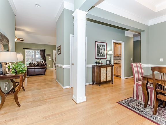 Move-in ready brick front home with gleaming hardwood floors throughout the main living areas. Open floor plan, transom windows, plantation shutters, moulding package, split bedroom plan! Kitchen features bar seating, stainless steel appliances including a gas range & microwave, tile backsplash, step-in pantry, raised panel cabinetry with bump-ups and moulding. Kitchen is open to great room with vaulted ceiling, ceiling fan, gas log fireplace, with custom built-ins. Two guest rooms share a hall bath. Owner suite has a tray ceiling with ceiling fan, walk-in closet with custom organizers, private, ensuite bath with dual sink vanity, garden tub, and stand up shower. Screen porch with ceiling fan overlooks private yard with extensive landscaping backing to trees.