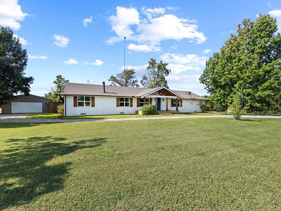 A modern farmhouse with all the fixins...This place has the perfect combination of a beautifully updated home and an ample amount of acreage. It gives a blank canvas for your dreams to become a reality, from a weekend getaway to a permanent homestead. The large kitchen is absolutely stunning so there's no excuses for any bad cooking! Custom cabinetry and stunning features are exquisite. Such easy access to the highways nearby, yet it feels like you are far out in the country. The mature trees are so hard to find these days, and this place has them! The back patio is a true oasis, a place to enjoy a cold drink on a hot summer day...use the outdoor kitchen to grill out...or build a firepit under the millions of stars and listen to the crickets sing. Two fenced pastures, ponds, two creeks, a loafing shed, what else do you need?! Bring your livestock. There's a well for the outside water spickets too. Grow your own food in the garden, light a fire in the wood burning stove, and THRIVE here on your own land! Hunt on your own land, see pics. Roof, gutters, and septic system all replaced in 2023. Windows are newer, all inside has been updated! Completely move in ready. Leveled in 2025 also. Schedule your private showing today.