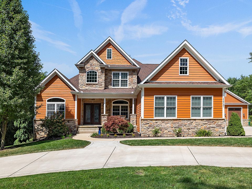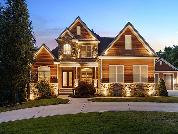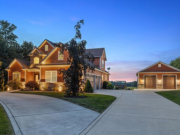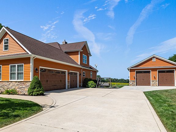 STUNNING! This 5 bed, 3 1/2 bath home is situated on 2 acres and beautifully updated. As you enter the home into the foyer, there is a nice sized dining room to the right and an office on the left with large windows and 13' ceilings. The primary bedroom is located on the main floor and has 2 walk-in closets and en-suite bath with double vanity, tile shower and whirlpool tub. The living room boasts 18' vaulted ceilings with floor to ceiling windows for a great view to the backyard. The large kitchen features an eat-in area, huge kitchen island, stainless steel appliances, and updated cabinetry, backsplash, and Quartz countertops. There is also a corner pantry in the kitchen. A main floor laundry room with extra counterspace and a utility sink finishes off the main floor. Upstairs you'll find a nice loft with seating area, 2 generous sized bedrooms, full bathroom, and large finished bonus room that would make a playroom or rec room. The walkout basement is like a home of its own! There are 2 bedrooms, a full bathroom, a large living area and wet bar with fridge and Quartz countertops. Luxury vinyl flooring is installed in the main living areas, with carpet in the bedrooms (the lofted area upstairs is hardwood floor). There is an attached 3 car garage and the large 2nd garage offers plenty of space for additional parking, workspace, or entertaining. Outside you'll enjoy the view of your private yard from the composite deck overlooking the property. The home also features brilliant up lighting that highlights the architecture of the home. For added peace of mind, Leaf Filter gutter guards are installed and there is a Generac whole house generator. This is one you don't want to miss, schedule your showing today!
