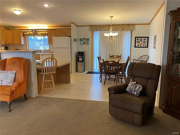 This beautifully maintained ranch home is located on 7.56 acres less than 5 miles from Adams and the intersection of Route 178 with Interstate 81. Three bedrooms and 2 full baths with 1,456 sq ft livings space. A sliding glass door from the dining area opens to a large deck in the back of the house adding more living space overlooking the back yard.
