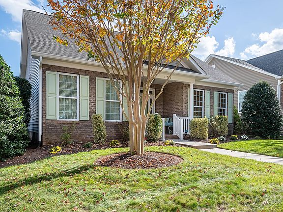 Welcome home to one of the premier 55 & better communities in Charlotte! This stunning Hunter model is located on a corner lot right across from a shared pocket park. Entering the foyer, you are greeted by beautiful hardwood floors that lead to an open floor plan with a great room that features a gas fireplace & a ceiling fan. The kitchen has white cabinets, stainless steel appliances, gas range, breakfast bar, quartz counters, modern tile backsplash & dining area. The cozy primary suite has a walk-in closet with custom shelves, & tray ceiling w/fan. The primary bath includes a step in shower, separate vanities with quartz counters, & some well thought out storage. After a long day at the clubhouse, unwind in the private sunroom or on the rear tiled patio featuring a gas grill hookup, & a pergola with a ceiling fan that offers plenty of shade. The community has a full time activities director with tons of amenities & clubs to keep you as busy as you want to be! Don't miss out!