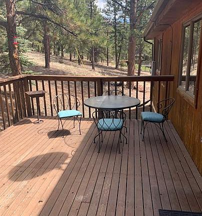 This beautiful mountain home nestled within pine and aspen trees is located on a quiet road, across from Elk Creek and within walking distance to Staunton State Park. If the sunny 4 acres don't do it for you, the privacy and mountain views will. This spacious 2300 square foot, 3 bedroom, 2 full bath home has an oversized 2 car attached garage, suitable for cars and trucks alike. Its living room, dining room, family room and decks provide comfortable areas for entertaining. Convenient to shopping in Conifer and commuting to Denver via 285. Two wood-burning stoves on the main level as well as hot water/natural gas baseboard heating. New wood floors in the kitchen, utility room, and bathrooms. Visit our website to complete an application prior to requesting a showing. Small domestic dogs only. www.GatehousePropertiesClorado.com