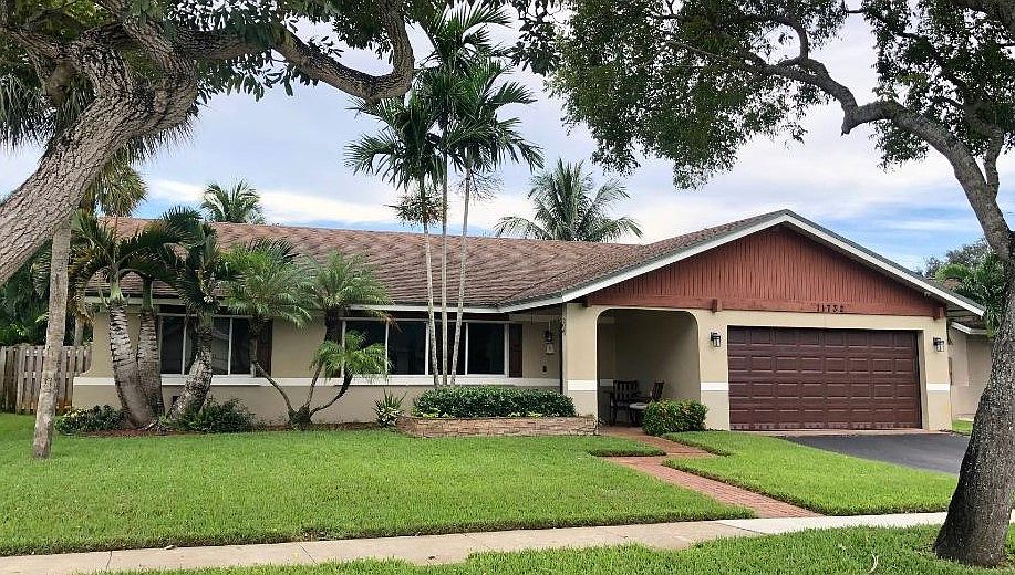 Great location in Flamingo Gardens located in Cooper City, Florida. This 3 bedroom, 2 bath, 2 car garage, heated pool w/jacuzzi is located on a cul-de-sac street. This home features a split bedroom plan, eat-in kitchen, separate family room and screened pool patio. Newer A/C in 2018. Newer wind mitigation inspection available. No flood insurance required. No HOA. A+ Schools and walking distance to schools, parks and stores. **NO LISTING AGENTS PERMITTED** Flooring: Laminate/Tile Cooling: Ceiling Fans/Central Electric Pool: Yes/Below ground heated pool w/jacuzzi/Screened Bedrooms: Split Bedrooms Dining: Dining-Family, Eat-in Kitchen Equipment: Auto Garage Door, Appliances, Washer/Dryer-Electric Exterior Features: Sprinkler-Auto/Generator Hook-up Interior Features: Smoke Detectors, Vaulted Ceiling, Walk-in Closet, Recessed Lighting Guest Bath: Jetted Tub/Shower, Double Sinks Master Bath: Walk-in Shower/Accessable from pool. Parking: 2 Spaces Road: Cul-de-sac Restrictions: None Security: CCTV Cameras Storm Protection: Yes/Hurricane Panels