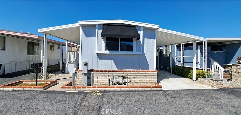 Welcome to this cute, manufactured home located in Cerritos Mobile Lodge, a senior park near public transportation and shopping. The home features 2 good sized bedrooms, 1 bath and indoor laundry hook-ups. It has been freshly painted, with laminate flooring throughout, appliances that are 2 years new, and a low space rent. It also comes with 2 storage sheds, one with an additional laundry hook-up. Come and make this home your own!