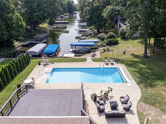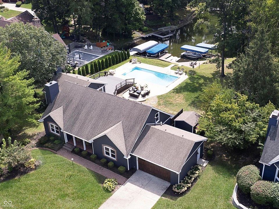 Gorgeous home on Geist an amazing backyard oasis situated on a half acre lot with a 40x20 salt water pool, deeded dock with boat and jet ski lift, and an expansive deck with room to entertain the masses. You will love the updated kitchen with large island with sink and breakfast bar, high-end stainless appliances, and lots of storage. Spacious great room with dramatic ceiling, built-ins, fireplace, and doors that connect the living space with the outside. Formal dining room with 2nd fireplace and bonus/office room. Main floor primary suite features an updated spa-like bath with double sinks and walk-in closet. Upstairs are two generous bedrooms and a full bath. Storage shed and invisible fence stay. Enjoy lake life at it's best.