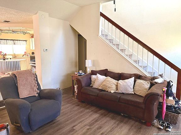 Welcome home to comfort and convenience! With a little TLC, this charming 2 story 3 bedroom 2.5 bath townhome will provide a peaceful retreat. This home offers an island kitchen, cozy fireplace and updated laminate wood floors throughout, including stairs. Located in a sought out family established neighborhood, close to walking trails and neighborhood park. Enjoy outdoor living at it's finest on the generous covered patio, perfect for BBQs and entertaining. Location is everything, situated near UTSA, Medical Center and USAA. Fine dining and shopping at The Rim and La Cantera. Close proximity to theme park thrills as well as day and evening entertainment spots.