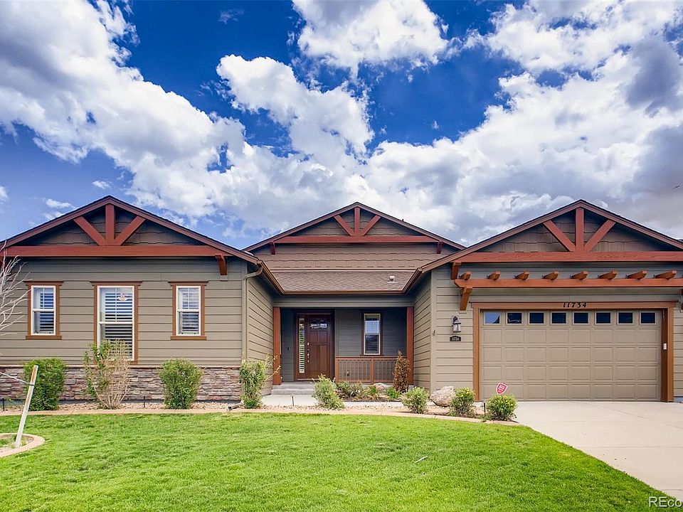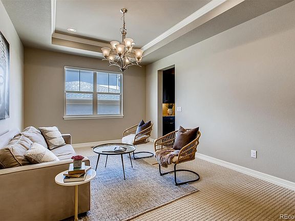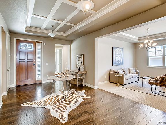Beautiful 5br/5ba home in the Parker Homestead community offers contemporary style in a new neighborhood. Featuring luxurious stainless steel appliances, granite counters, wood flooring and a private patio with gas fireplace, this home has it all. The covered front porch is set back for a private place to enjoy CO sunshine. Inside, the foyer is grand and has gorgeous light fixtures. A unique layout sets 2 bedrooms off the front of the home with a dual entrance full bathroom. The formal room works as either a dining or living room and has an adjoining small butler's pantry that transitions into the kitchen. The family room is gorgeous and has a crisp white contemporary mantle and shelving, a rectangular glass fireplace with travertine subway tile surround. The kitchen and eating area are spacious. A large kitchen island has a double undermounted sink. The gas stovetop and double built in ovens will delight any cook. Plenty of storage in the pull out draws of these rich wood cabinets. A walk-in pantry and small office have shelving and built in. The slider in the eating area leads to the covered patio with gas fireplace and fenced yard, perfect for enjoying Colorado's fine weather. Curtains can be drawn around the patio for privacy and adds a pop of color. The master bedroom suite is spacious with big windows. The attached bathroom includes a contemporary soaking tub, his/her closets and separate vanities. The oversized frameless shower with bench and travertine is stunning. The basement offers a large second family room with surround sound and wired for multi-media, a small bar with sink. Additionally, 2 bedrooms connected by a full bathroom provides more living space or room for offices/hobbies. An unfinished room is perfect as a home gym or play area. The main floor laundry/mud room is conveniently the pass through to the 2-car garage. Enjoy the peacefulness of Parker with easy access to Parker Road's many amenities from this gorgeous luxury home!