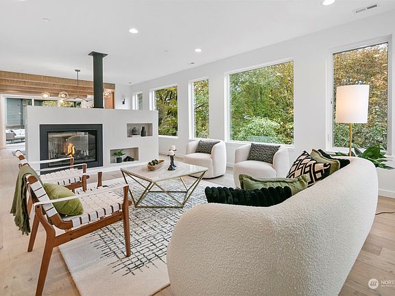 Spectacular. Modern. Broadview. Set on a peaceful + private lot bordering Carkeek Park, this stunning new home by premier local builder Olsen Anderson will take your breath away. Step inside to soaring ceilings, big windows, great views of surrounding greenery, and an open floorplan designed for modern living. You'll love the dream kitchen, dramatic 2-sided fireplace, incredible living and dining spaces. Entertain outdoors year-round on the covered deck! Upstairs find 4 beds + 2 baths, including spa-inspired primary suite. The lower level features nice guest suite + huge rec room with wet bar. Outside enjoy the deck, patio, 2-car garage + RV/boat parking, low maintenance yard. Walk to Carkeek Park trails, beach, local shops + restaurants.