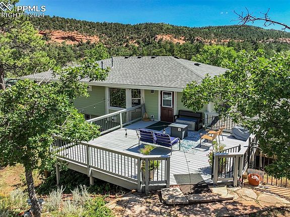 Looking for your own slice of Colorado… this is it! Situated on 2.37 usable acres in a fabulous foothills setting that is conveniently located close to town, this house “checks all the boxes”. Updated with a Farmhouse Kitchen, gorgeous bathrooms, ¾” Hickory wood floors, AC, new carpet in August 2024, double & triple paned windows, low maintenance fiber-cement siding, and it has a moss rock wood burning fireplace. This home has been meticulously maintained and is move-in ready! Enjoy the covered front porch and the home’s large light-filled windows that offer gorgeous views of the foothills and red rock formations in every direction! The kitchen has butcher block countertops, a farmhouse sink, custom Carrara Marble tiled backsplash, gas range/oven, stainless steel dishwasher & refrigerator. The large dining area is open to the kitchen, and it has a bay window with beautiful views. The updated bathrooms have marble countertops, custom tile floors, custom tile showers surrounds, and modern glass entries. The large bedroom in the lower level has a sitting area and walk-in closet and could have lots of options for multi-generational living. The 20x20 deck is perfect for outdoor living in the spring, summer and fall. With fun outdoor lighting it’s magical in the summer evenings. The home is connected to Red Rock Valley Water District for water and it also has a small barn & 2 meadows for horses, an 8x12 storage shed and gardening area with raised flower beds, and it is landscaped with native plants & wildflowers. This home has quick commutes to Colorado Springs, Penrose, Florence, Pueblo or Canon City! And, its only 8 minutes to Cheyenne Mountain State Park to the North w/ horse, hiking & biking trails, and Aiken Canon to the South for hiking. This home is the perfect Colorado Retreat!