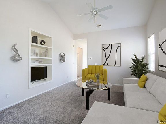 Enjoy Beautiful Mountain views from this Ranch-style home in the desirable “Buffalo Run” neighborhood! This 3-bedroom, 2-bath home features an inviting living room with vaulted ceilings and a built-in entertainment center. The kitchen has new stainless-steel appliances, a pantry, and updated light fixtures. The spacious primary suite offers a ¾ bath, walk-in closet, new flooring, and updated fixtures. Two additional bedrooms include one with built-in shelves, a walk-in closet, and French doors—perfect for a home office. Fresh paint and carpet throughout! Enjoy the fenced backyard with a patio overlooking the mountains. The 2-car garage includes storage cabinets and overhead shelving. A walking path next to the home leads to the community park and playground. Laundry room with washer and dryer included. Close to Buffalo Run Golf Course & Barr Lake. Easy access to I-76 & E-470. Short trip to Denver International Airport, Gaylord Rockies Resort, dining, shopping, parks, trails and much more!!!