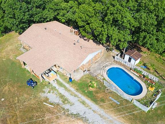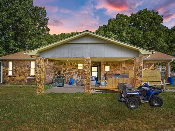 Escape the City! 10 Beautiful wooded Acres near Sequoyah State Park & Ft. Gibson Lake! 35 min from Tulsa. Sunset views off the deck. Huge Vaulted Great Room, Inground pool, oversized rear entry garage is walk out basement area, storm shelter, and great space for workshop. New roof,gutters, windows, and many interior updates have been completed. Seller began upgrades, now home needs your finishing touches! Room for gardens, animals, & parking for the entire family reunion!