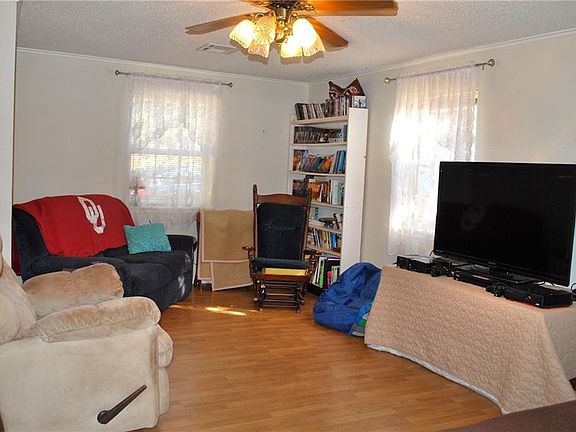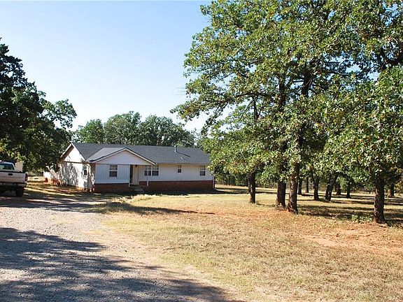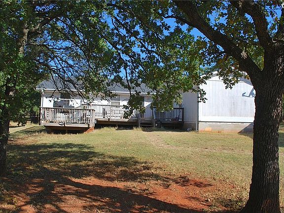 True 4 bedroom home on a beautiful 10 acre tract of land. Privacy and wildlife abound and yet just 10 minutes from I-35! Mother-In-Law floor plan with master, full bath & large walk-in closet on one side and 3 beds with full bath on the other. Large dining area open to living and kitchen. Breakfast bar in kitchen and all appliances stay. Spacious utility room! HUGE deck with tons of shade trees and playground for entertaining. Older wooden shop with concrete floor and electric and storm cellar. Additional parking in back, circle drive in front and tons of space for you to enjoy! Acreage is partially wooded and has a small pond.