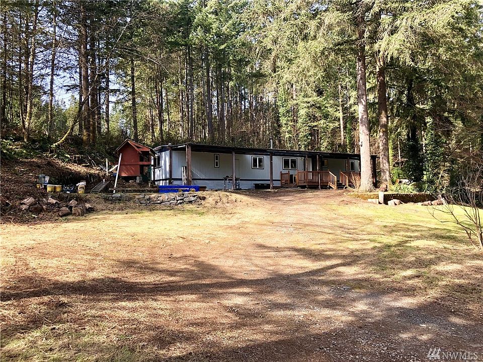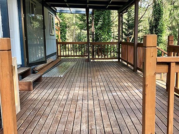 Move in ready home on over 2 acres WITH hardwood flooring and granite! Home boasts beautiful hardwood in the living areas, granite with white cabinetry in the large open kitchen with lots of natural light, and new carpet in the spacious bedrooms! Enjoy the freestanding wood stove during the cold months and during the warmer months enjoy the huge covered decking both in front and back! There are partially fenced coops on the property, garden space, as well as gated entry all for under $170k!